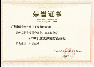| 2007年至今 ● | 连续9次荣获广东省公共安全技术防范协会颁发的“广东省优秀安防企业”称号 |